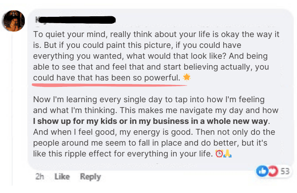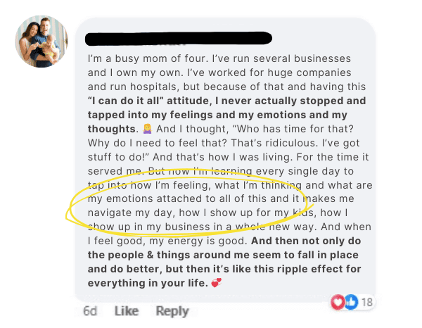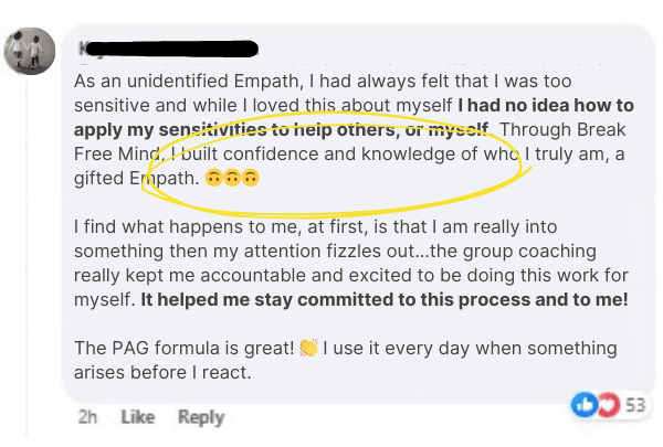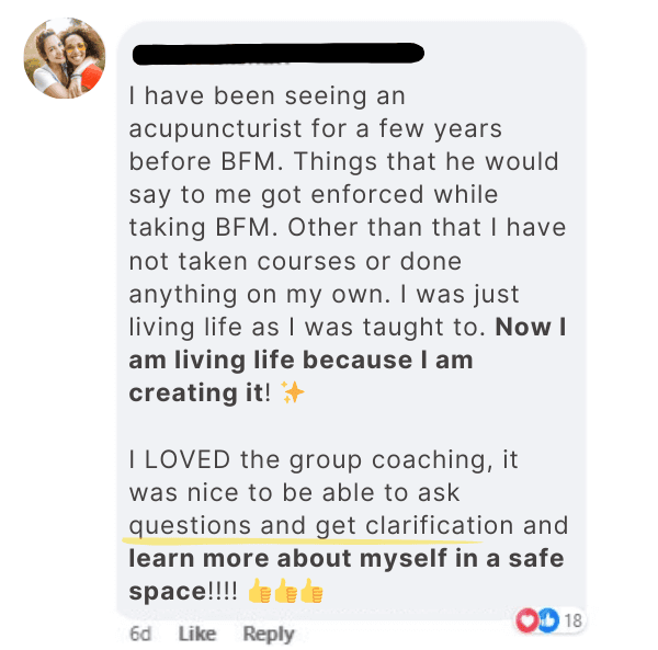 "BFM unveiled my Empath gift, group coaching kept me committed"
