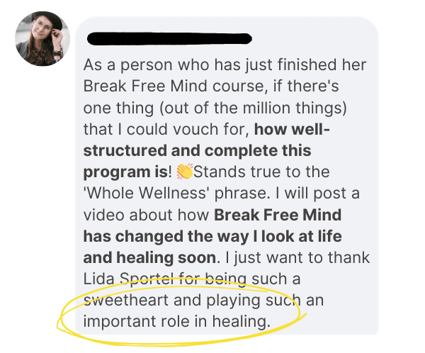 "Love the wide knowledge in Break Free Mind! Covers all the bases for your whole self."